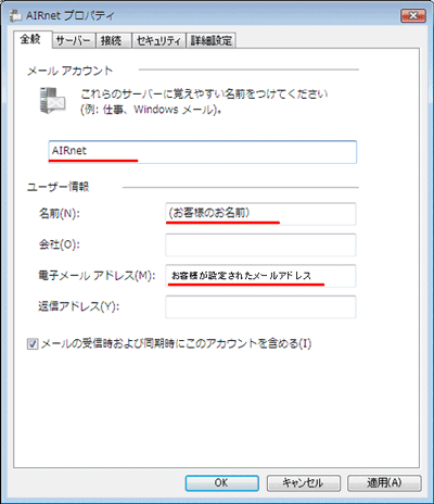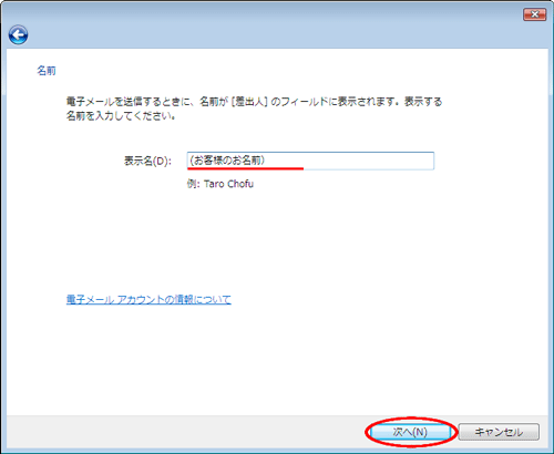 「表示名(D)」に、「お客様のお名前」を入力します。
