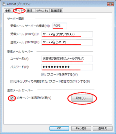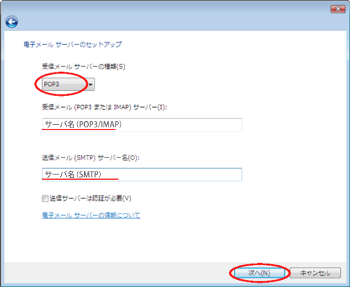 ※サーバ名については「お客様設定シート」に記載しておりますので、不明な場合は管理者様へご確認下さい。