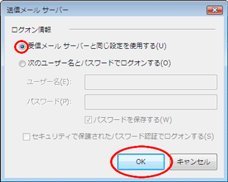 「受信メールサーバーと同じ設定を使用する(U)」にチェックします。