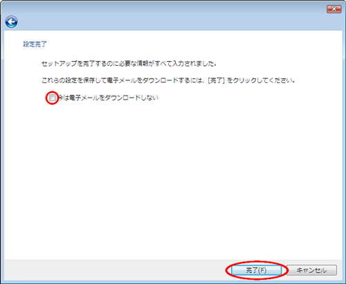 「OK」ボタンを押して、アカウントの設定を終了します。