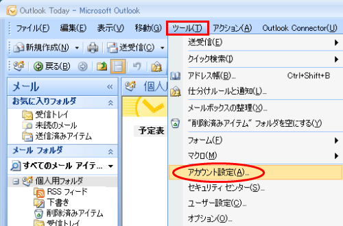 - メニューの「ツール」をクリックし、「アカウント設定」をクリックします。