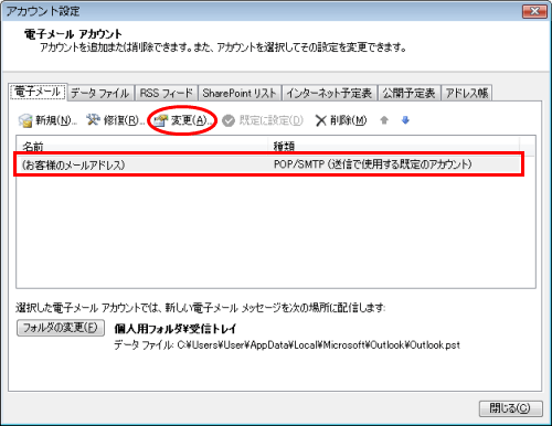 「OK」ボタンを押して、インターネット電子メール設定の画面を閉じます。
