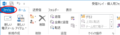 - 「ファイル」タブをクリックします。